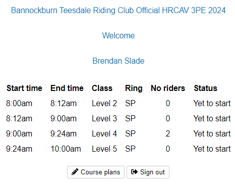 When a rider arrives in the ring you can either select them from the list on the left hand side or enter their number in the box on the top left.