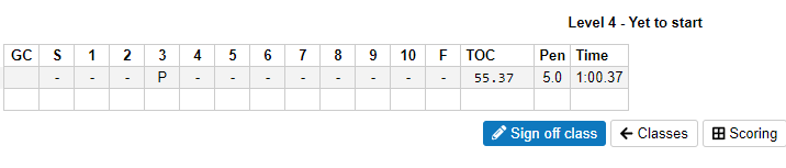 Make sure to Sign Off the class before moving to the next class. This will finalise the scores and let the event organisers know this class has been completed and can be presented in 30 minutes