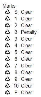 When a rider crosses the finish line you can press the Clear button and this will stop the timer. In this case you can see the rider finished the course in 55.37 seconds but had a penalty at obstacle 3. You can alter the recorded time by touching the clipboard icon next to the time.
