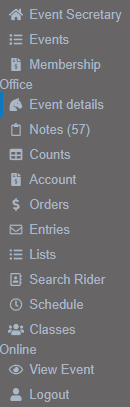 Event Secretary - This will take you back to the Event Secretary Home Page