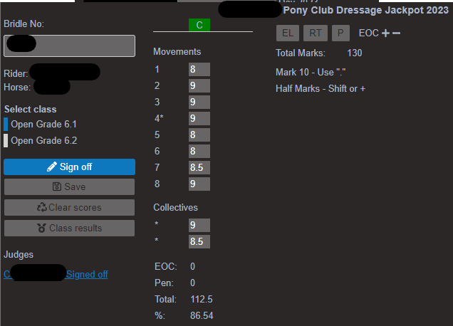 - To remove all marks for a rider press the Clear Scores button