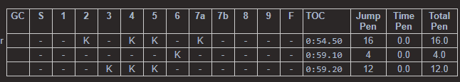- Add the time taken by the rider under TOC. You can navigate between riders using the up and down arrows. Note: You need to enter all the digits so 0:54:59