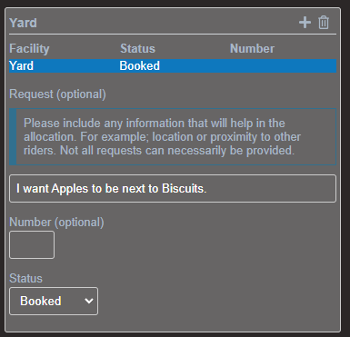 A horse facility at a Venue has a set number of facilties which is set on the Facilities page.