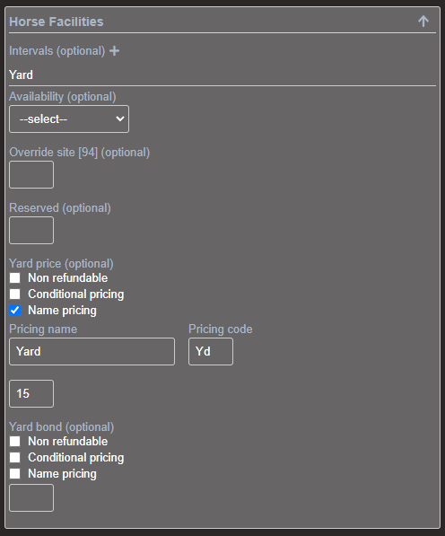 Yards can be given conditional pricing by ticking the Conditional Pricing tickbox. This can allow you to give club members free yards for example. For more information on Conditional Pricing view the Conditional Pricing How To guide.
