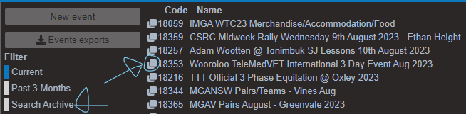 Once on the manage page you need to find the event you want to copy. You can use the filter to search for events in the Past 3 Months or search the archive for even older events.